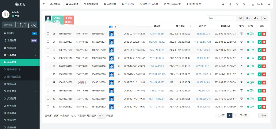 工地发布招工信息,工人发布找活名片信息,查看联系方式需要消耗积分、置顶刷新也需要使用积分、积分可充值、可以查看积分获取和消耗记录,也可以通过要求好友注册来获取积分,可以查看谁看过我,和我看过谁的记录,还有资讯动态,实名认证、实名查询等功能,后台可以审核查看和编辑这些信息、发布资讯动态、设置刷新置顶查看联系方式的消耗积分、设置注册和邀请的赠送积分、充值比例设置、轮播图、首页分类图标和连接设置等。